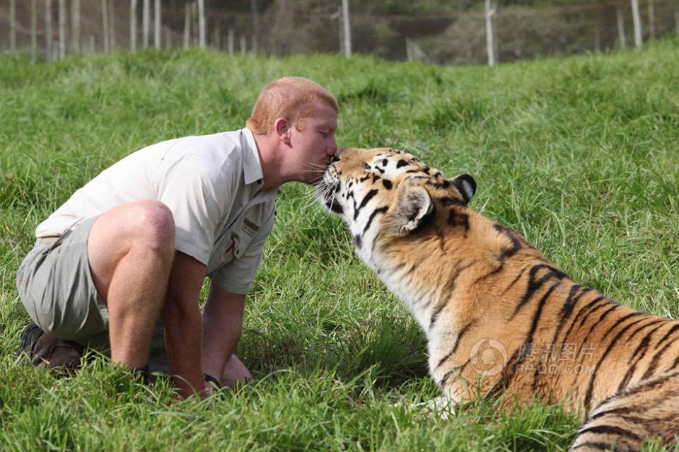 Para último uma imagem emocionante e que me toca bastante. O ser humano é capaz de façanhas incríveis e amores verdadeiros. Esta fotografia mostra um tratador que beija um tigre no focinho, numa reserva de animais selvagens. Aqui não há presas nem predadores, apenas a amizade que os une. Muito bonito.
